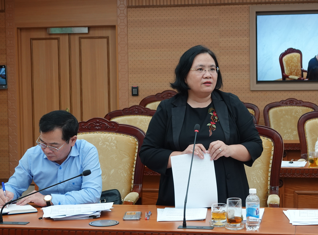 Bà Nguyễn Thị Thoa, Phó Cục trưởng Cục Quản lý công sản trình bày tóm tắt nội dung dự thảo Nghị định